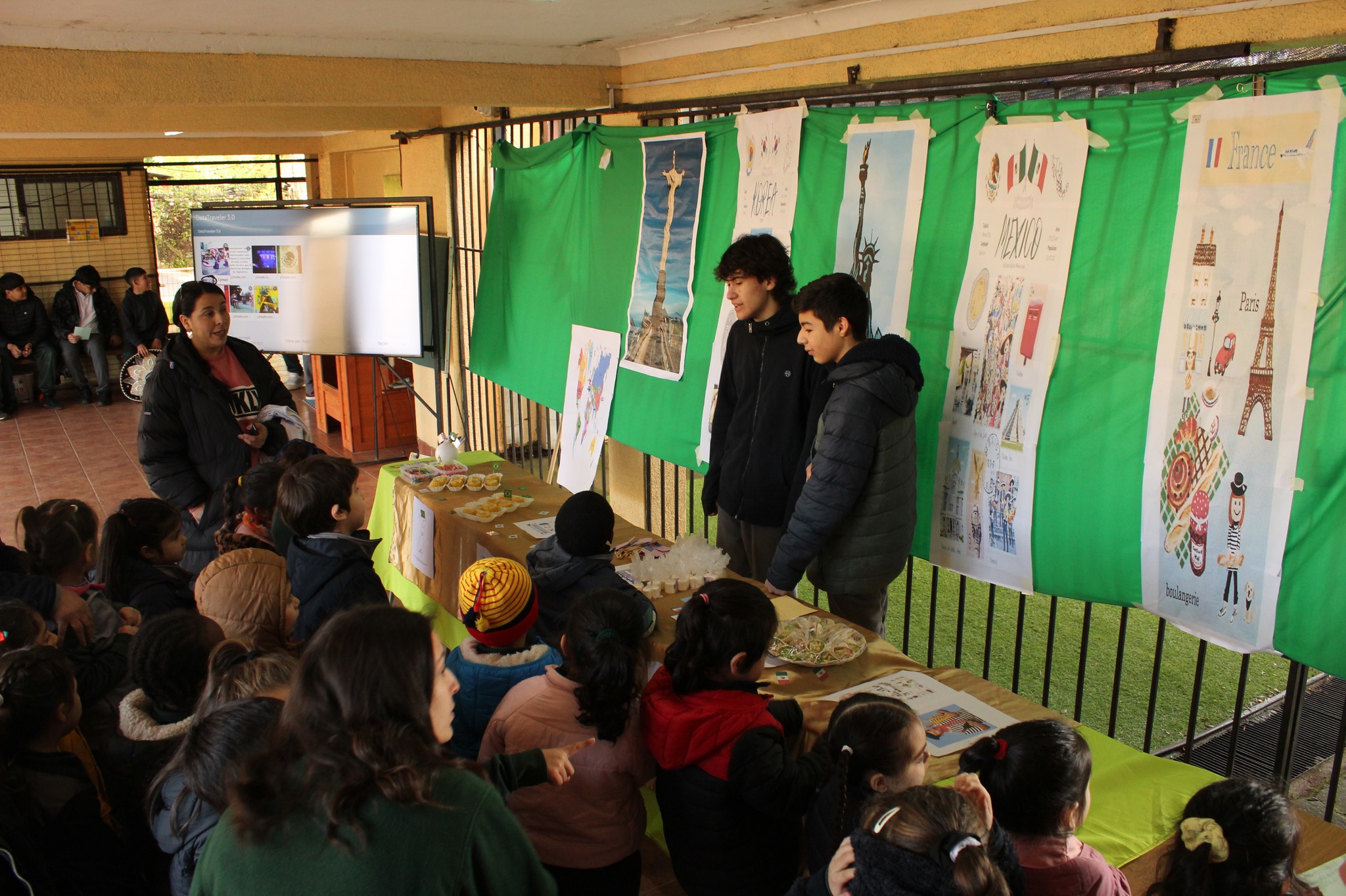 Los estudiantes de 8 básico de la escuela Carlos Spano, presentan 1º Feria Internacional de países a los cursos de kinder y pre kinder, con el apoyo de sus profesores de inglés y estudiantes en práctica.