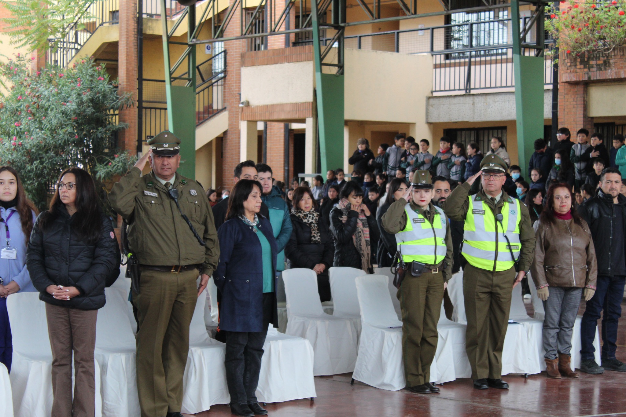 ESCUELA CARLOS SPANO, inició su jornada hoy con un Acto Cívico que contó con la presencia de los funcionarios SUB OFICIALES MAYORES: Sra. NAYARET VALENZUELA REVECO, Sr. LUIS ELGUETA ACUÑA, Sr. JULIO ZÁRATE TAPIA (EX-ALUMNO DE NUESTRA ESCUELA) Y SARGENTO 2º Sr. JAIME FLORES MORALES. Como Institución Educativa nos sumamos al hondo pesar del Cuerpo de Carabineros De Chile, ante la pérdida de sus tres oficiales caídos en acto de servicio, rogamos por el descanso de sus almas y consuelo para sus familias. ELSA CÁCERES TOLEDO DIRECTORA